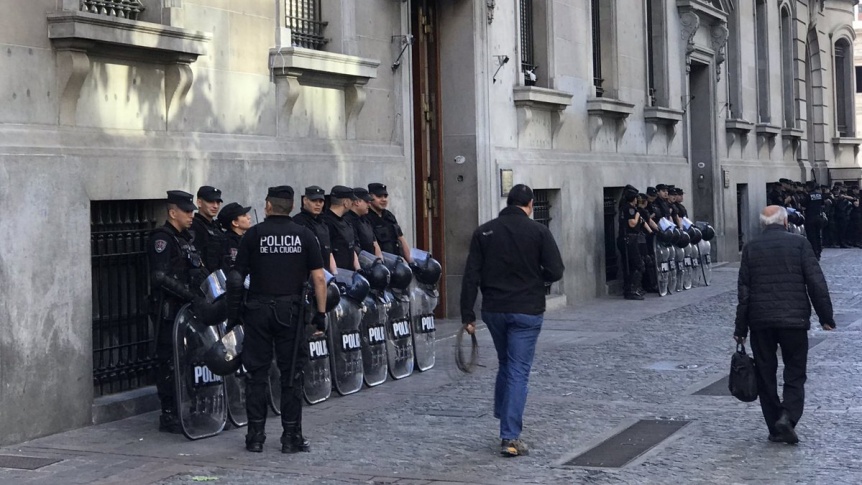“Vallas y policías en la Legislatura para debatir la propuesta de crear la UNICABA. Que lejos estamos de debatir en serio y construir acuerdos para que la educación sea política de Estado, expresó Leandro Halperín de Evolución.